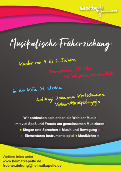 Die musikalische Früherziehung führt Kinder im Alter von 4 bis 6 Jahren spielerisch an die unterschiedlichen Elemente der Musik heran.